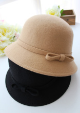 韩国蝴蝶结圆顶礼帽女韩版秋冬天羊毛呢盆帽渔夫帽英伦复古毡帽子