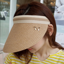 韩国蝴蝶结太阳草帽韩版草编空顶鸭舌帽夏天防晒遮阳帽沙滩帽子女