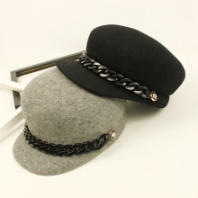 韩国时尚链条羊毛骑士礼帽秋冬天复古毛呢帽子女韩版潮英伦鸭舌帽