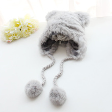 可爱熊猫耳朵加绒兔毛皮草帽子女秋冬季保暖雷锋帽韩版针织护耳帽