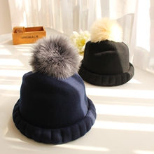 英伦卷边小圆帽韩版潮秋冬季丸子帽小礼帽女纯色兔毛针织毛线帽子