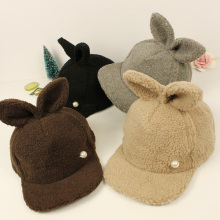 韩国毛绒兔耳朵帽子女秋冬天可爱棒球帽韩版百搭保暖青年鸭舌帽潮