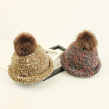 韩国毛球混色针织毛线帽秋冬天卷边加厚护耳帽子女保暖百搭盆帽潮