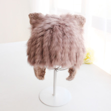 韩国猫耳朵兔毛皮草帽子女韩版潮秋冬季毛线帽女士保暖针织护耳帽