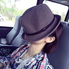 韩版皮带扣针织宽檐礼帽女夏天逛街遮阳帽子春秋季百搭英伦爵士帽