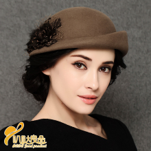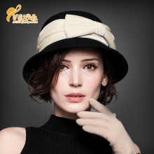 库茵 复古蝴蝶结毛毡帽秋冬女士时尚优雅小礼帽纯羊毛呢帽子