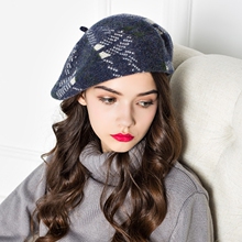 库茵 知性美细格纹羊毛双层画家帽南瓜帽八角帽女士秋冬帽子