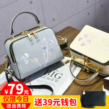 包包女2017新款潮韩版简约百搭单肩包刺绣小包医生包手提包斜挎包