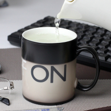 ON OFF开关变色水杯子 欧美创意马克杯 出口陶瓷茶杯办公带盖带勺