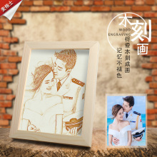 520送男女生朋友父亲情人节礼品创意木刻画DIY照相片定制生日礼物