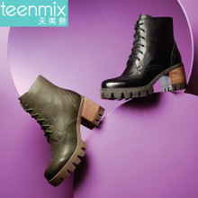 Teenmix/天美意冬季牛皮女鞋简约休闲英伦短靴80623DD6