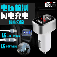 汽车载手机充电器多功能通用型双usb汽车充一拖二点烟器转换插头