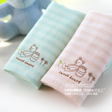 洁丽雅正品小毛巾可爱小熊刺绣童巾条纹清新纱布柔软不掉毛小毛巾
