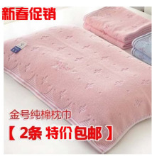 特价 金号专柜正品 刺绣柔软细腻纯棉花边无捻单人枕巾2条包邮