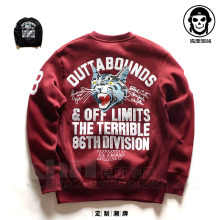 鬼潮原创 日系潮牌 猫头刺绣 修身纯棉加绒 圆领t 长袖套头卫衣男