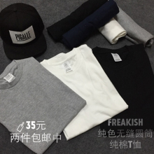 2015新款男装无缝圆筒短袖T恤欧美纯棉纯色黑白灰色文化衫圆领TEE