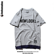 日系潮流学生纯棉圆领t恤男短袖欧美潮牌休闲拼接字母情侣装半袖