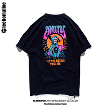 夏季日系潮牌复古西海岸街头情侣装t恤圆领打底衫卡通流行短袖男