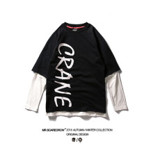 欧美简约街头死飞滑板街舞休闲男女情侣假两件印花圆领套头卫衣潮