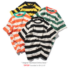 夏季韩国ulzzang原宿港风复古原创粗条纹潮男女情侣短袖T恤男tee