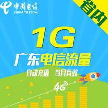 广东电信流量充值 1G省内本地流量包当月有效自动充值SN