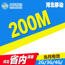 河北移动流量充值 200M省内本地流量包当月有效自动充值