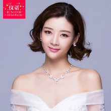 仪诺 韩式新娘饰品蝴蝶锁骨女项链耳环套装婚纱礼服首饰配饰耳夹