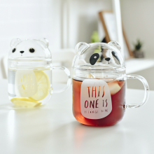 创意耐热无铅玻璃杯子 可爱萌透明女带盖水杯 情侣家用早餐牛奶杯
