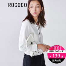 洛可可2017春装新款时尚撞色燕尾领雪纺衬衫女百搭长袖直筒套衫