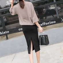 潞依韩弹力包臀半身裙秋冬中长款高腰开叉包裙秋季百搭韩版一步裙