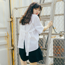 【SL预4天左右】鹿与飞鸟 百搭2种面料拼接后背开叉绑带T恤 1159