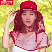 帽子女夏天可折叠防晒遮脸遮阳帽 防紫外线面纱可拆卸沙滩太阳帽