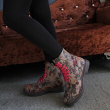 38码断码清仓 十足欧美范 客供印花面料多孔系带马丁短靴潮鞋女鞋