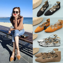 包邮 英伦风尖头单鞋欧美简约平底鞋性感绑带单鞋女