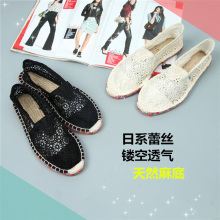 包邮2016夏蕾丝镂空网纱平底单鞋韩版潮透气一脚蹬草编麻底渔夫鞋