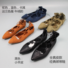 2016新款版型超正啊 柔软不磨脚 小羊皮绑带尖头平底浅口单鞋牛皮