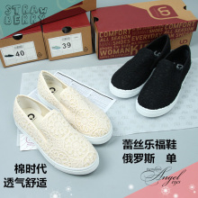 包邮 小白鞋镂空蕾丝一脚蹬乐福平底板鞋 单鞋 乐福鞋 大码女鞋