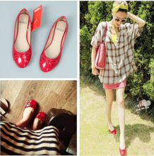 潮鞋俄罗斯 春秋款 漆皮圆头浅口蝴蝶结平底鞋大码女单鞋 大码鞋