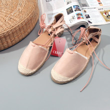 2017新款平底鞋凉鞋女夏麻底鞋脚踝绑带系带女单鞋草编渔夫鞋帆布