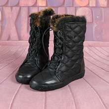 冬季前系带兔毛布面牛皮靴女靴子中筒靴马丁靴女鞋子单鞋 C39-1