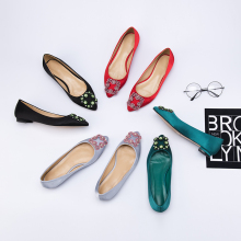 【4.24晚8点秒抢99元】 雪花扣 丝绸面尖头低跟方扣水钻单鞋女