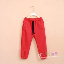 LM Kids正品童装儿童男女孩童冬季运动休闲加绒长裤收口红色棉裤