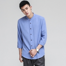 日系型男 原创复古风棉麻七分袖衬衫中国风立领男士衬衣纯色内搭