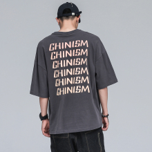 不二先生 夏装薄款美式街头潮牌半袖T恤衫男破洞字母印花短袖TEE