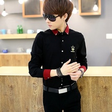 青年春秋季英伦长袖衬衫男士休闲韩版衬衣潮修身简约个性薄款寸衫