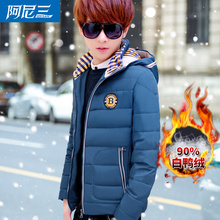 青少年中长款羽绒服男士2016新款轻薄款韩版外套冬季高中学生潮流
