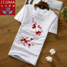 刺绣短袖男t恤2017夏装潮流圆领半截袖男士冰丝体恤绣花夜店衣服