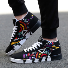 夏季学生高帮韩版潮流情侣帆布鞋男生休闲板鞋涂鸦百搭个性男鞋子