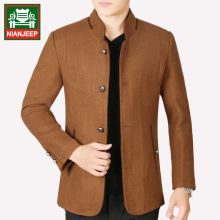 nian jeep吉普盾秋冬男装外套中年羊毛呢子夹克立领商务爸爸装
