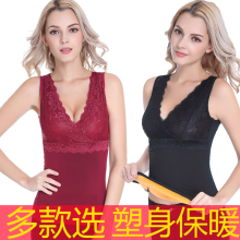 秋冬季保暖背心女加厚加绒贴身 塑身美体保暖内衣蕾丝V领单件上衣